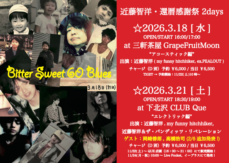 4月からのツアーはひとりでやるんですけど、これはもう完全に還暦モードで、今までの自分を総括するようなライブをやります。そのツアーが終わったあとに、純粋なレコ発ライブというのをバンディッツで7月3日に下北沢CLUB251でやります。3月21日のバンディッツとのライブは俺の還暦がメインになっちゃうんで。